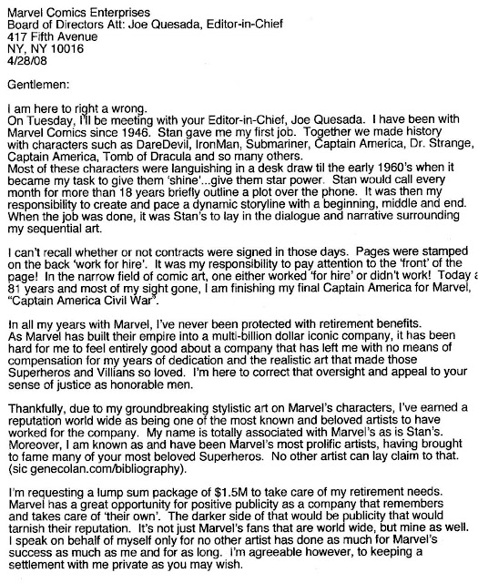 And people wonder why I rarely, if ever, buy comics anymore. Perhaps when the companies start treating those who helped build their empires a bit better then I might be tempted back into the flock. Until then, and while they continue to pay hundreds of thousands to writers and artists to endlessly regurgitate ideas first done, and done far better, by the likes of Jack Kirby, Steve Ditko, Roy Thomas, Bill Finger, Jerry Siegel, Arnold Drake, Gardner Fox, Steve Gerber and yes, Gary Friedrich, to name just a very few, and while they continue to pay artists to draw sub-par images, I see no real point in buying the offerings. For the few million it’d cost Marvel – and DC for that matter – to set up a fund, or to pay a percentage to the original creators and their families – it’d surely be worth it for the good faith that they’d garner in the long run. But then that’s why I’m not working for Marvel or DC - call me odd, but I'd find it very hard to work for a company that treats it's founding fathers in such a manner. And if you're a creator who is working for Marvel or DC and believe that this sort of thing can't happen to you - think again. Once the broom sweeps out the current regime and a new one comes in, you'll be just as screwed as those who came before you. Count on it.